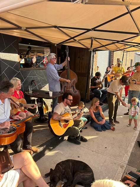 I saw many great pieces of art – plays, musicals, movies, concerts, stand-up, improv. I tried line dancing. I tried a Gospel Choir. I tried a classical choir. In July, after a lot of trial and error, I found a scene that really spoke to me at a bluegrass music jam in Red Hook. In a homey warm space with people of all ages, I remembered how much I LOVE and NEED to make music with others and started playing my guitar again. Sunday afternoons and Wednesday evenings became treasured times of learning and leading (yes!) tunes, lingering and letting the time roll by. This excitement inspired me to take a class at the Jalopy Theater and volunteer at the Brooklyn Folk Festival.